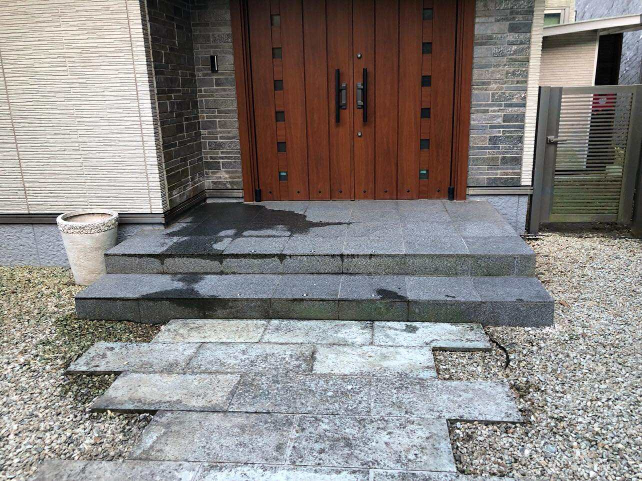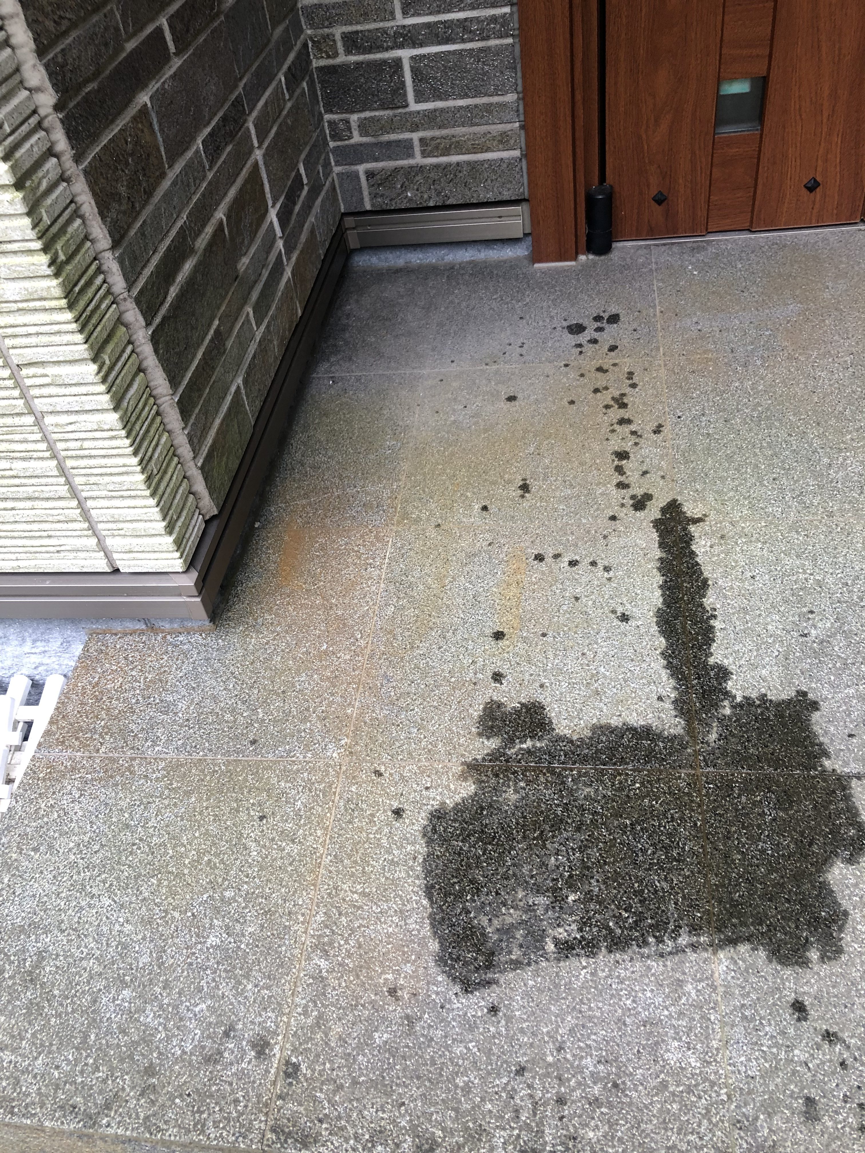 床タイル苔洗浄12年間蓄積された苔が床についており、床の色も苔の緑色になっていました。今回、床に対しての苔除去洗浄に成功し自身をもってサービスを提供することができます。最初は苔の色だったタイルが洗浄を行い床本来の色を確認することができました。お客様に喜んでいただくことができました。雨の日、歩いていると滑って転倒したと言われており、確かに私も現場確認に行った際、ツルっと滑って尻もちをついてしまいました。苔を放置すると美観だけでなく転倒リスクもありますので、苔は放置せずに除去することをお勧めします。苔は微生物ですので、通常の薬剤では簡単に落ちません。特殊な洗剤が必要になります。苔洗浄を専門家に任せてみませんか。