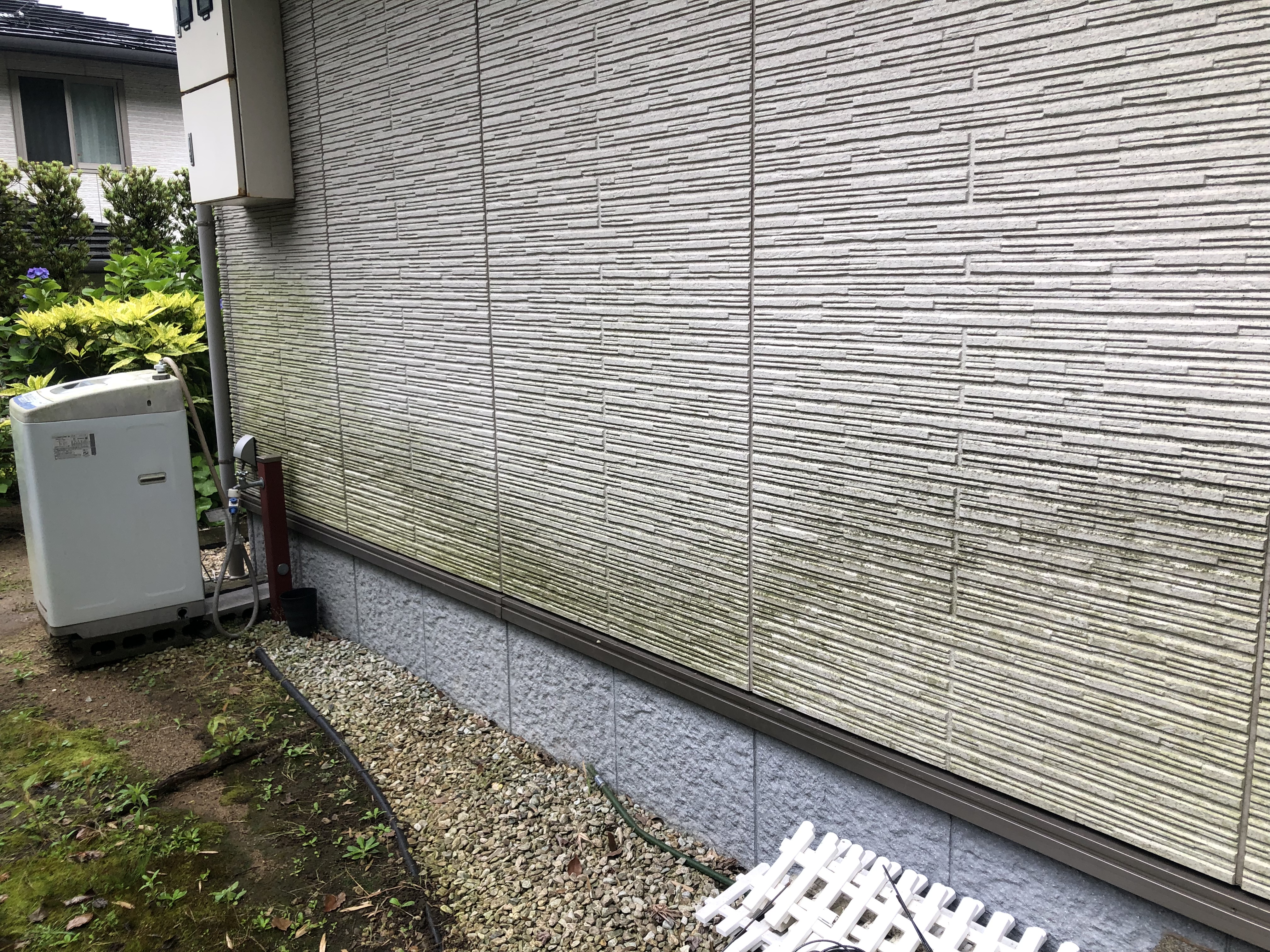 築12年の外壁藻洗浄と床苔除去洗浄をさせていただきました。