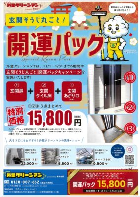 玄関そうじ丸ごと!開運パックキャンペーンを実施しております。